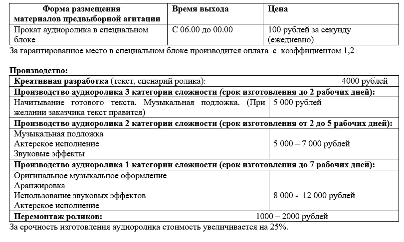 Размещение материалов предвыборной агитации производится на условиях 100% предоплаты.