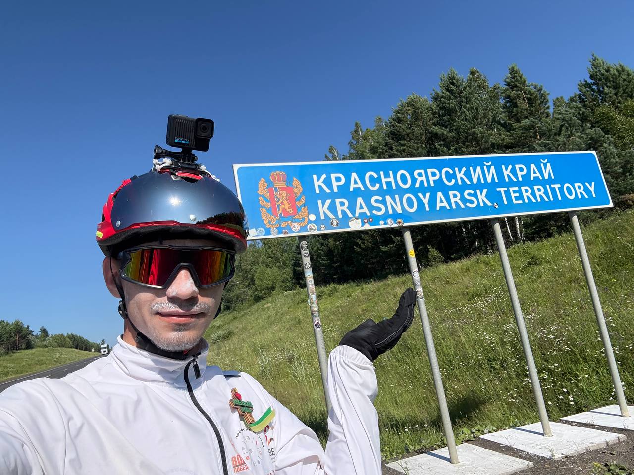 Парень рассказывает, идея о велопутешествии ему пришла спонтанно — решил, что нужно что-то менять в своей жизни. Преодолеть такое большое расстояние просто так было неинтересно — решил, что это нужно связать с 80-ой годовщиной великой Победы. Есть и другие цели, не такие глобальные.